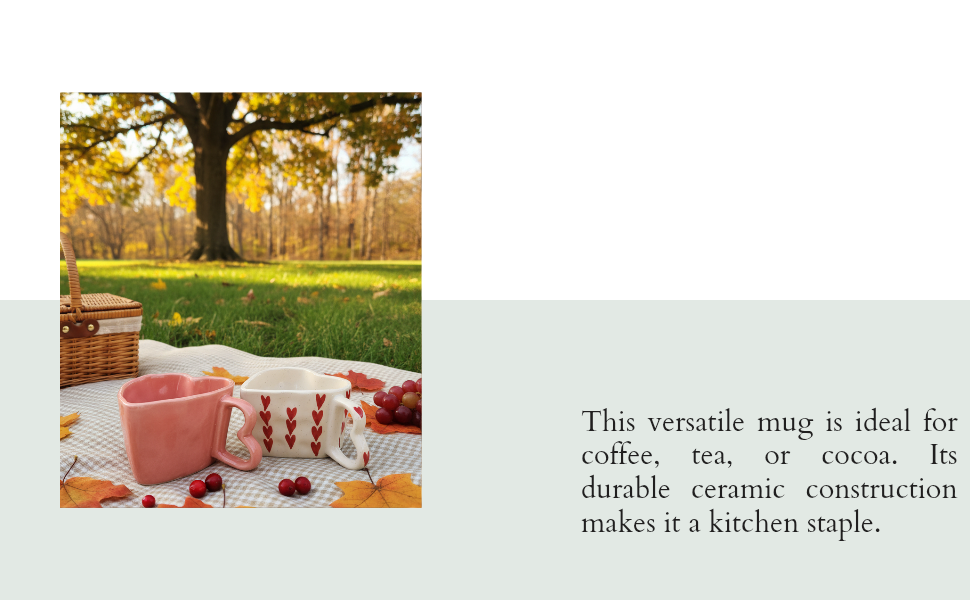 - DESIGN FEATURES: Heart-shaped ceramic mugs in pink and white colors with charming red heart pattern design and heart-shaped handles for a romantic touch